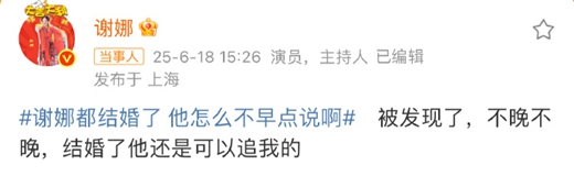 谢娜作为娱乐圈的“开心果”,向来以古灵精怪、情商超高著称。面对这样的乌龙事件,她迅速接梗回应:“被发现了,不晚不晚,结婚了他还是可以追我的。”这一句话,就像一颗甜蜜的糖果,瞬间化解了尴尬,还巧妙地暗示了婚姻中持续经营浪漫的可能性。她还不忘调皮地调侃张杰需“重新追妻”,将这场乌龙事件瞬间转化为夫妻之间的情趣互动,让人不禁感叹这对夫妻的相处之道真是充满了智慧和乐趣。